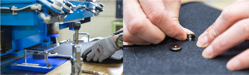 また、車体に取り付けるための穴にハトメ加工を行います。